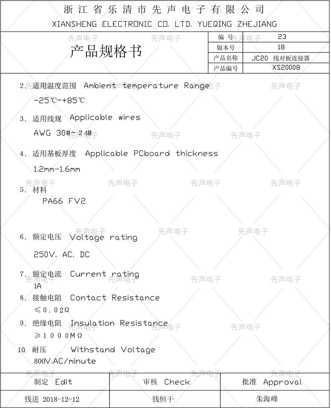 端子規(guī)格書