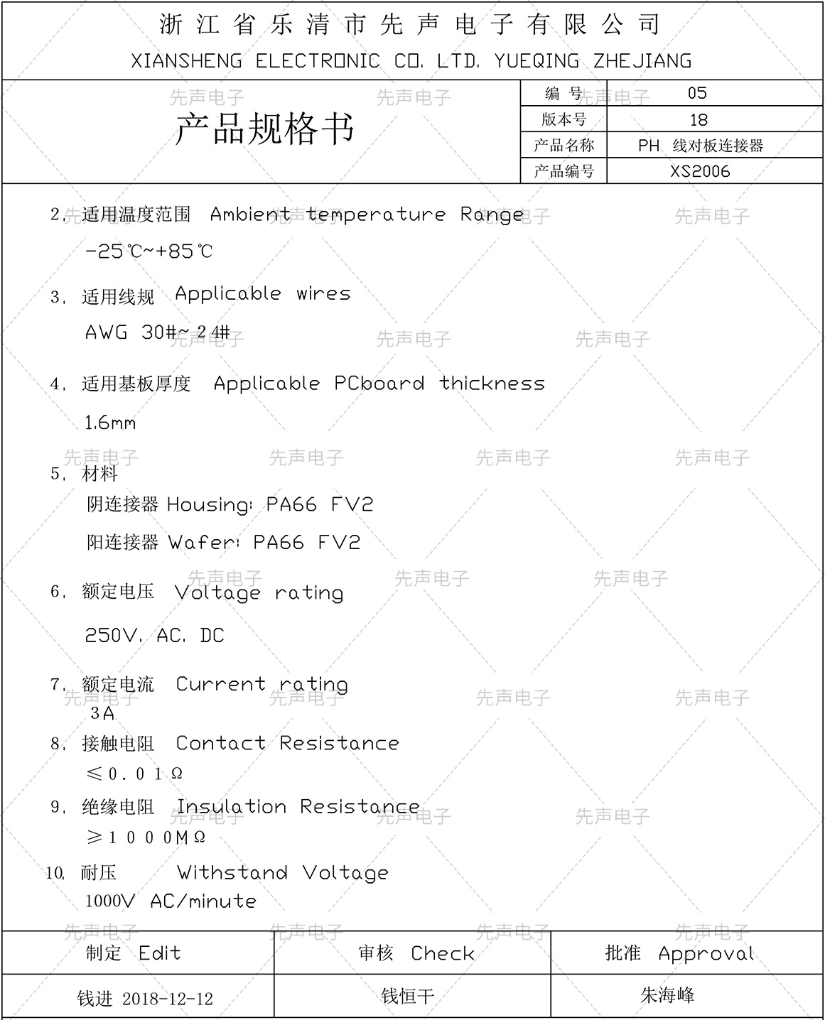 端子規(guī)格書